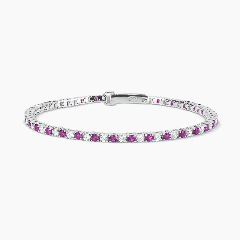 Silbernes Tennisarmband mit synthetischen Rubinen und Zirkonia.