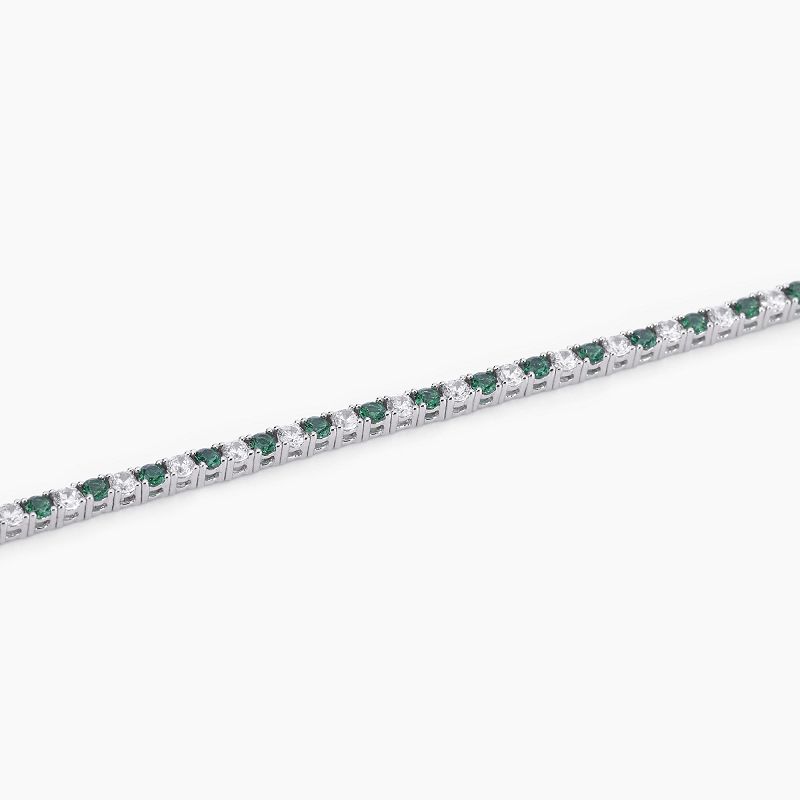 Silbernes Tennisarmband mit synthetischen Smaragden und Zirkonia.