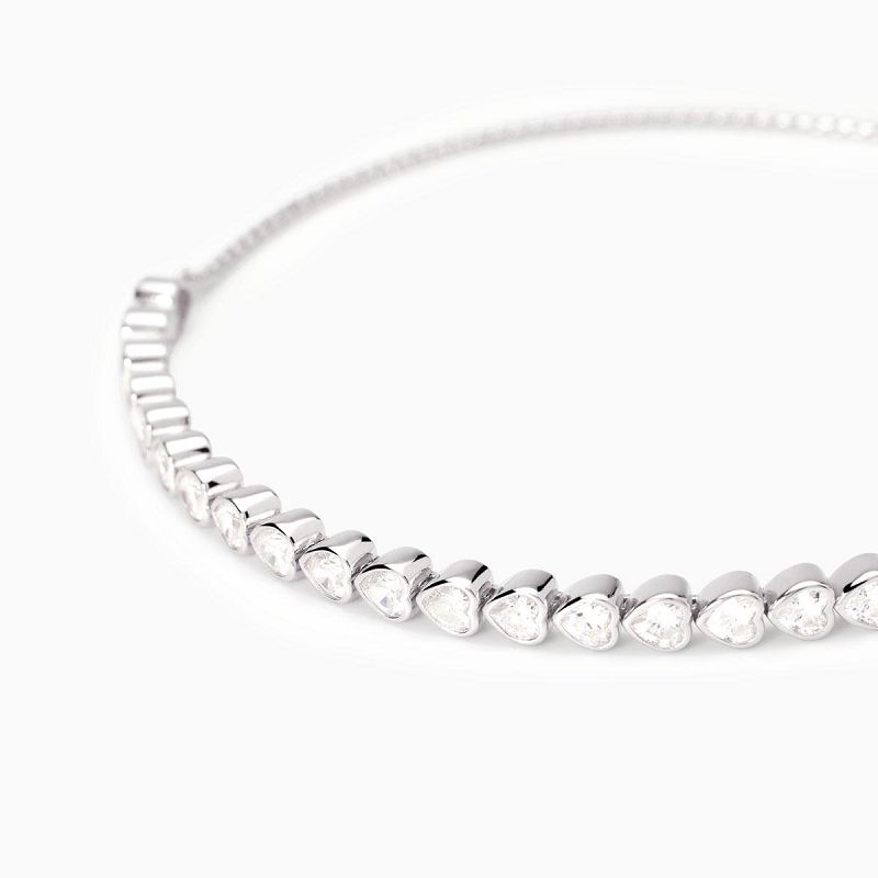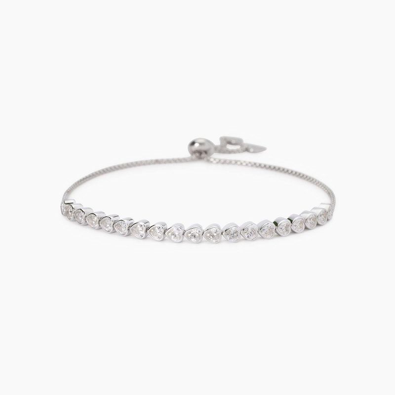 Verstellbares Damenarmband aus rhodiniertem Silber mit venezianischer Kette und herzförmigem Zirkonia-Tennisarmband.