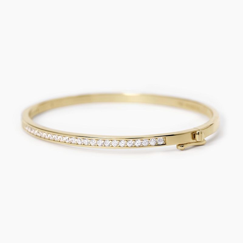 Starres Armband aus 18-karätig vergoldetem Silber mit Sicherheitsverschluss. Ein Schmuckstück mit minimalistischem Design und funkelnden Details.