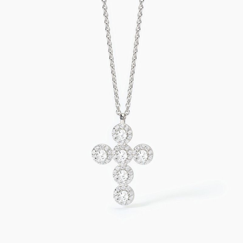 Verstellbares Damen-Choker aus rhodiniertem Silber mit Ankerkette, Kreuzanhänger und weißen Zirkonia.